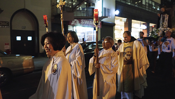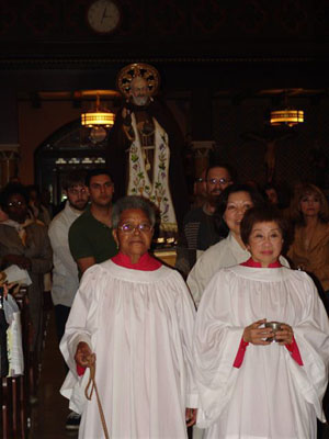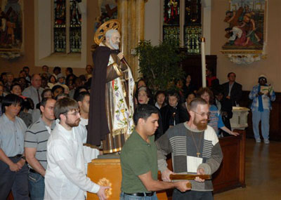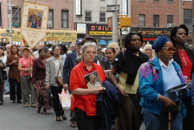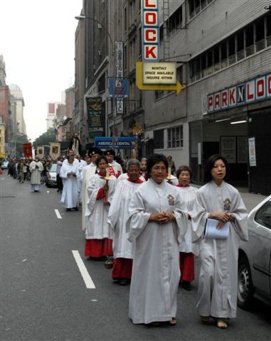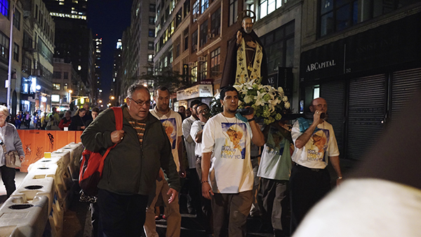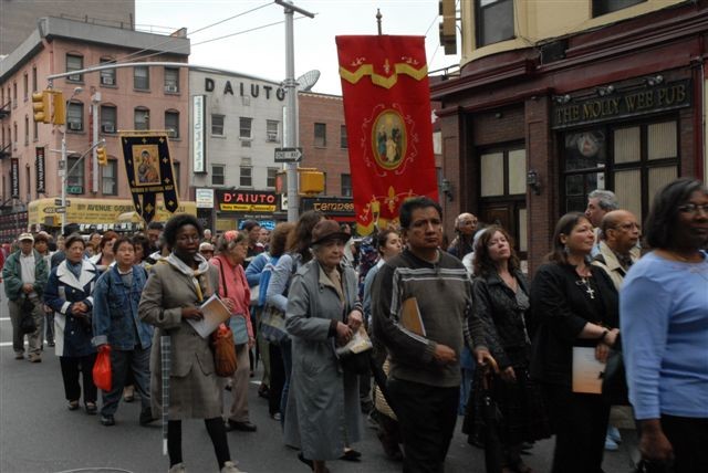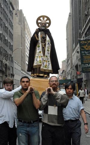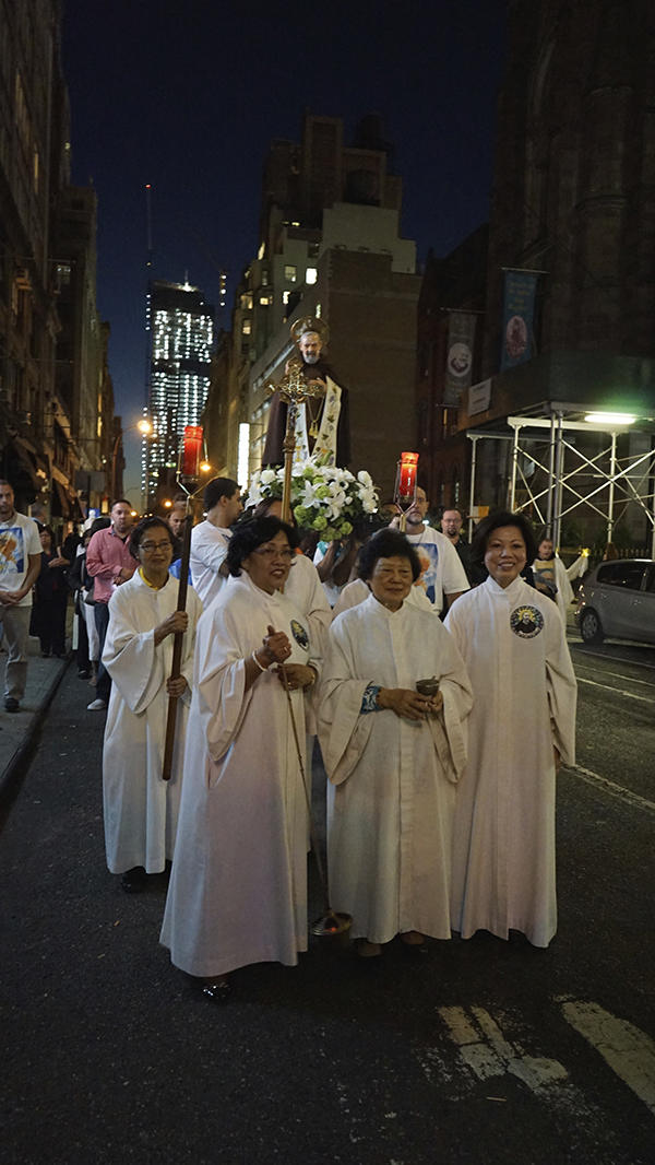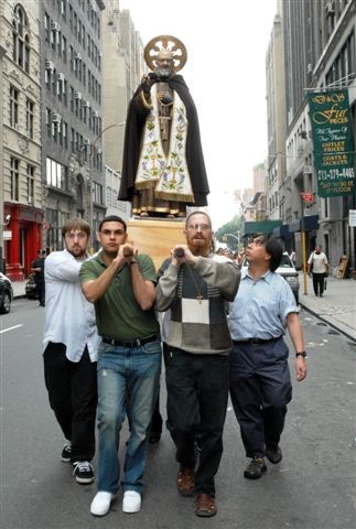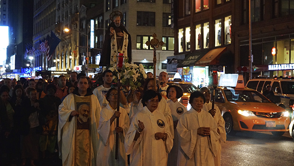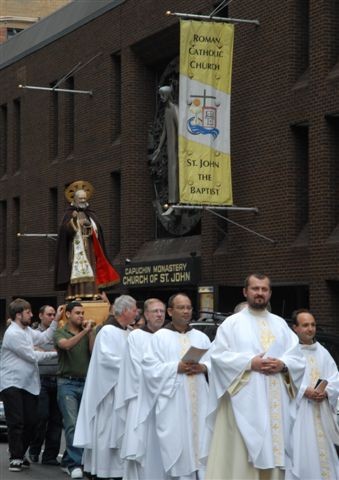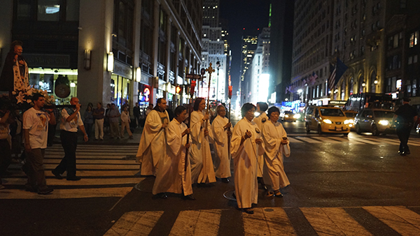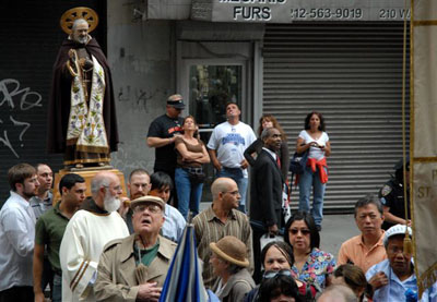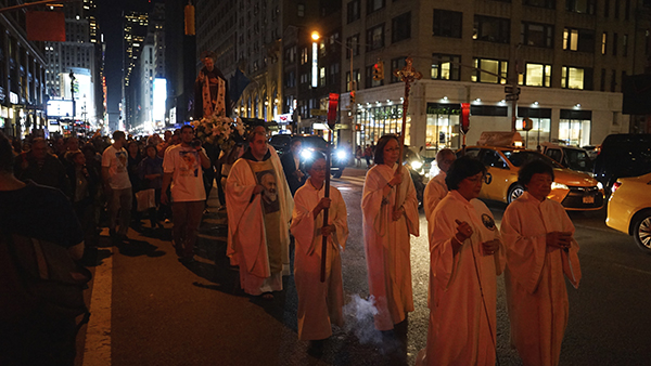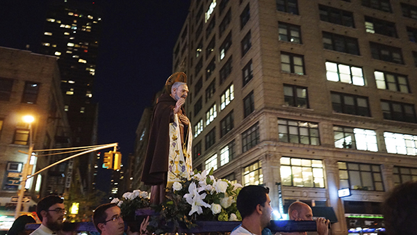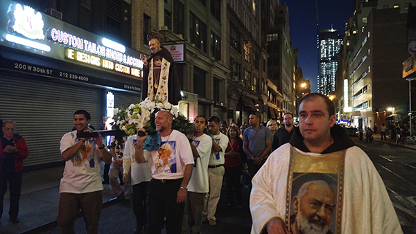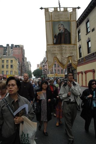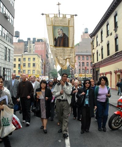 After the feastday Mass, the clergy, special guests and the faithful processed out into the streets of Manhattan with the Pilgrim Padre Pio Statue.
