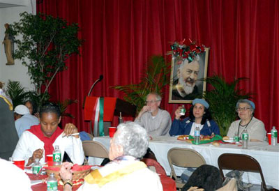 After the Mass, procession and blessing with St. Pio's relics, all the faithful were invited to a pasta lunch for fellowship in the church hall. A very special note of thanks to Adam the cook at the Friary, who started cooking baked ziti for 600 people at 3 AM the morning before.